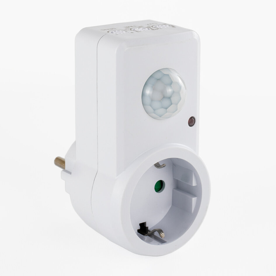 Notre détecteur de mouvement pratique peut allumer et éteindre vos lumières lorsqu'il détecte un mouvement. Le détecteur de mouvement convient à une utilisation à l'intérieur et la durée d'allumage de la lumière après le mouvement est réglable de 10 secondes à 15 minutes. La sensibilité peut être ajustée ; une faible sensibilité permet une détection jusqu'à 2 mètres, tandis qu'une sensibilité élevée permet une détection jusqu'à 9 mètres dans un cône de 120 degrés.