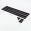Ce kit de démarrage se compose de 4 rails de 75 cm, d'un bornier et d'un embout, de 3 connecteurs droits et d'un connecteur à 90 degrés, ainsi que de matériel de montage. Avec les connecteurs fournis, vous pouvez former un rail droit ou créer une forme en L. Si vous souhaitez créer une forme en U, commandez au moins un rail supplémentaire et deux connecteurs à 90 degrés. Pour créer une forme en T, commandez un rail supplémentaire, un capuchon d'extrémité et un connecteur en T. Le rail en aluminium peut être coupé sur mesure à l'aide d'une scie à métaux et d'une boîte à onglets. Le rail comporte des trous pré-percés pour faciliter le montage. Des trous supplémentaires peuvent être percés si nécessaire.
