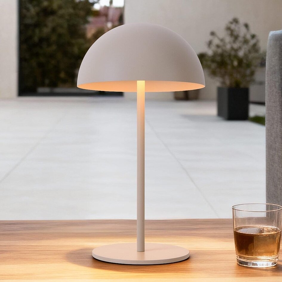 Donnez de l'ambiance à votre jardin avec la lampe de table rechargeable Vanta. Le design beige en forme de champignon fait de cette lampe une attraction élégante sur votre table de jardin, votre balcon ou votre terrasse. Grâce à la batterie intégrée, vous pouvez utiliser Vanta sans fil et la placer facilement là où vous avez besoin de plus de lumière. Grâce à la fonction de gradation, vous déterminez vous-même l'intensité lumineuse appropriée. La lumière blanc chaud (2700K) crée une ambiance accueillante pendant les longues soirées d'été. Outre l'extérieur, la lampe peut également être utilisée à la maison pour améliorer subtilement l'ambiance. Grâce à sa conception résistante aux éclaboussures (IP44), Vanta est spécialement conçue pour une utilisation extérieure sans souci.