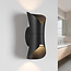 Olympus wandlamp is voorzien van een geïntegreerde LED-lichtbron die warm wit licht verspreidt met een lichtopbrengst van 1400 lumen. De zwarte aluminium basis meet 24,4 cm in hoogte, 10,4 cm in breedte en steekt 10,8 cm uit vanaf de wand. Met een IP44-classificatie is de lamp spatwaterdicht en geschikt voor gebruik in vochtige ruimtes.