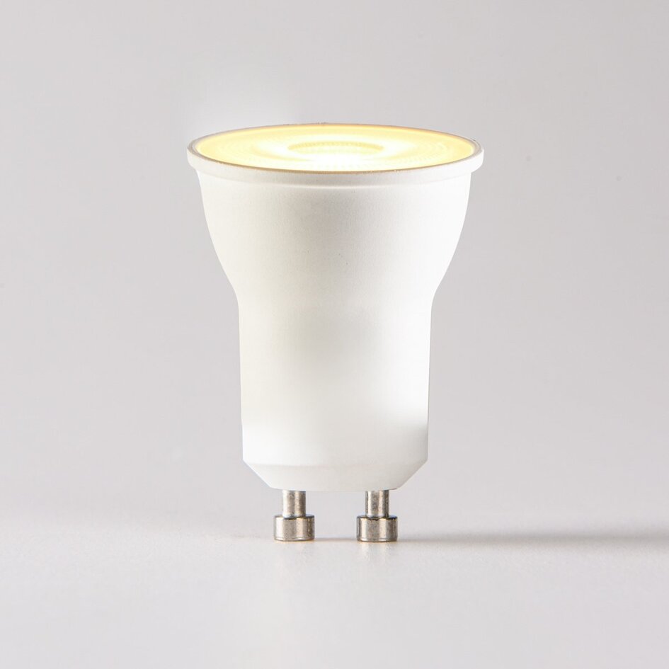 De PAR11 GU10 LED spot met een vermogen van 3,2 watt is een energiezuinige vervanger voor een traditionele halogeenspot van circa 35 watt. Deze compacte spot met GU10 fitting produceert 300 lumen en een warme lichtkleur van 2700K, wat zorgt voor een aangename en sfeervolle verlichting in huis. Dankzij de dimbare functie pas je eenvoudig de lichtsterkte aan.