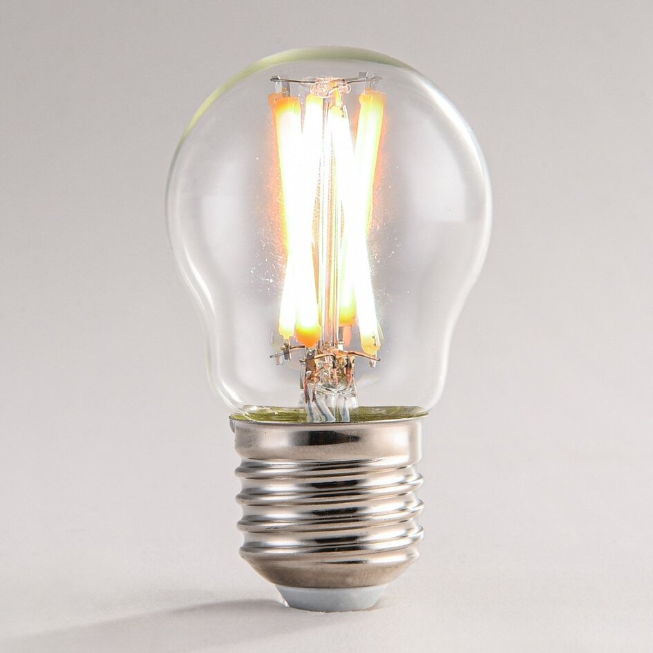 Deze slimme filament lamp van 4,9 watt is zeer geschikt om jouw woonkamer, terras, horecagelegenheid of kantoor te voorzien van sfeervolle verlichting. Slimme filament lampen zijn de nieuwste ontwikkeling op LED gebied. Filament slaat een brug tussen enerzijds het gezellige uiterlijk van de ouderwetse gloeilamp en anderzijds het zeer lage energieverbruik en de lange levensduur van de LED lamp. De glazen kap van de lamp creëert een origineel lichteffect. Het filament in de lamp is goed te zien, wat de lampen tot ware blikvangers maakt. De lampen kunnen goed gecombineerd worden met onze prikkabels. Deze lampen hebben een diameter van 45 mm.