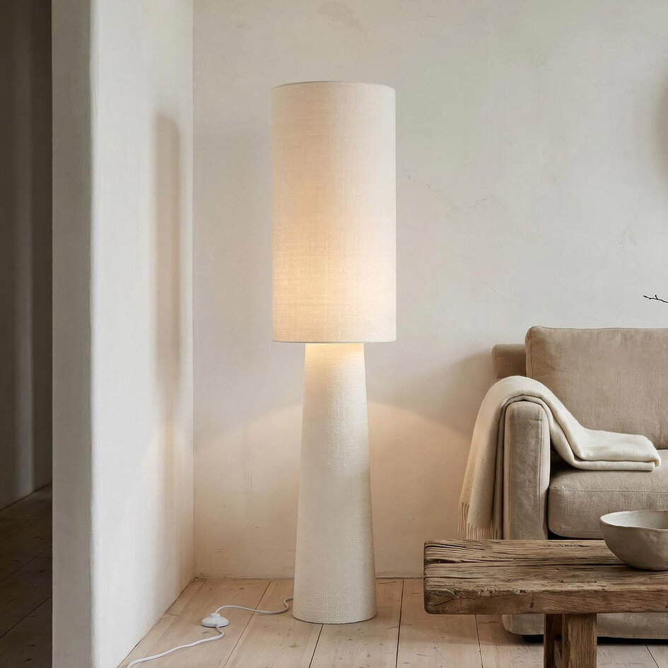 Vloerlamp Lumo heeft een rustig ontwerp dat warmte en zachtheid in het interieur brengt. Het linnen zorgt voor een diffuus en sfeervol lichteffect, terwijl de licht uitlopende vorm de lamp een elegante uitstraling geeft. De neutrale gebroken witte kleur past moeiteloos in uiteenlopende woonstijlen, van modern en minimalistisch tot Scandinavisch of Japandi. Lumo staat mooi naast de bank, in een leeshoek of in de slaapkamer als subtiele sfeerverlichting. De lamp is voorzien van twee E27 fittingen (lichtbronnen niet inbegrepen) die het licht naar boven en beneden verspreiden, en wordt geleverd met een kabel van 1,5 meter met schakelaar.