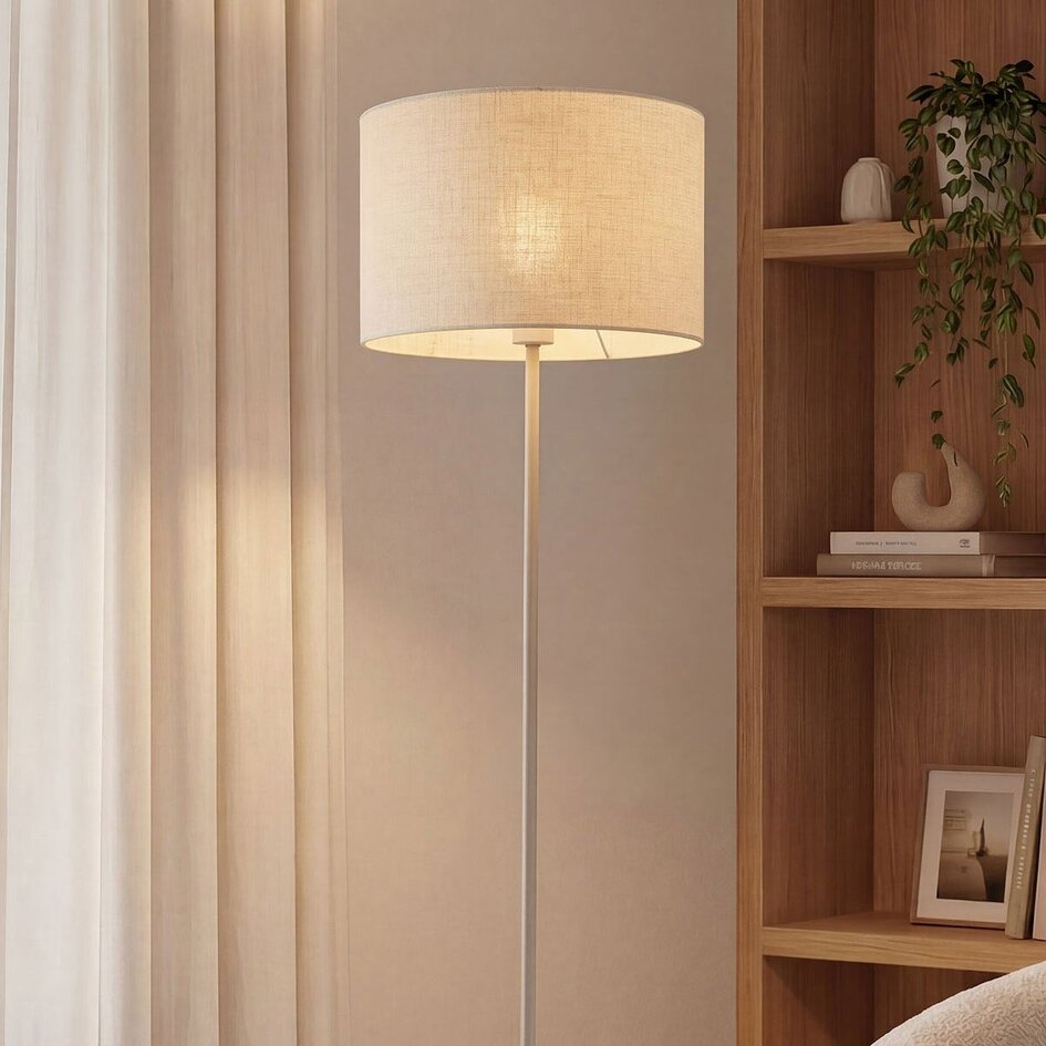 De linnen kap van vloerlamp Avana zorgt voor een warme en zachte lichtverspreiding in de ruimte. Het slanke metalen armatuur in beige geeft de lamp een rustige en tijdloze uitstraling, waardoor hij eenvoudig te combineren is met verschillende interieurstijlen. Dankzij het minimalistische ontwerp komt Avana mooi tot zijn recht naast een bank of fauteuil, maar ook in een slaapkamer of leeshoek. Voorzien van een E27 fitting (lichtbron niet inbegrepen) en een kabel van 1,8 meter met schakelaar voor eenvoudig gebruik.